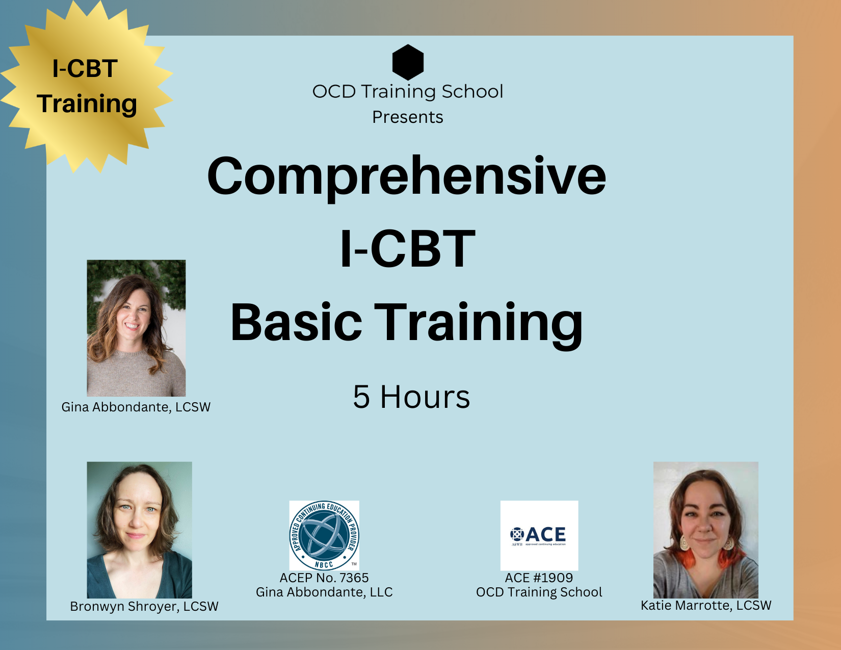 Target Audience: Introductory. For clinicians with little to no experience in the subject matter (I-CBT)
